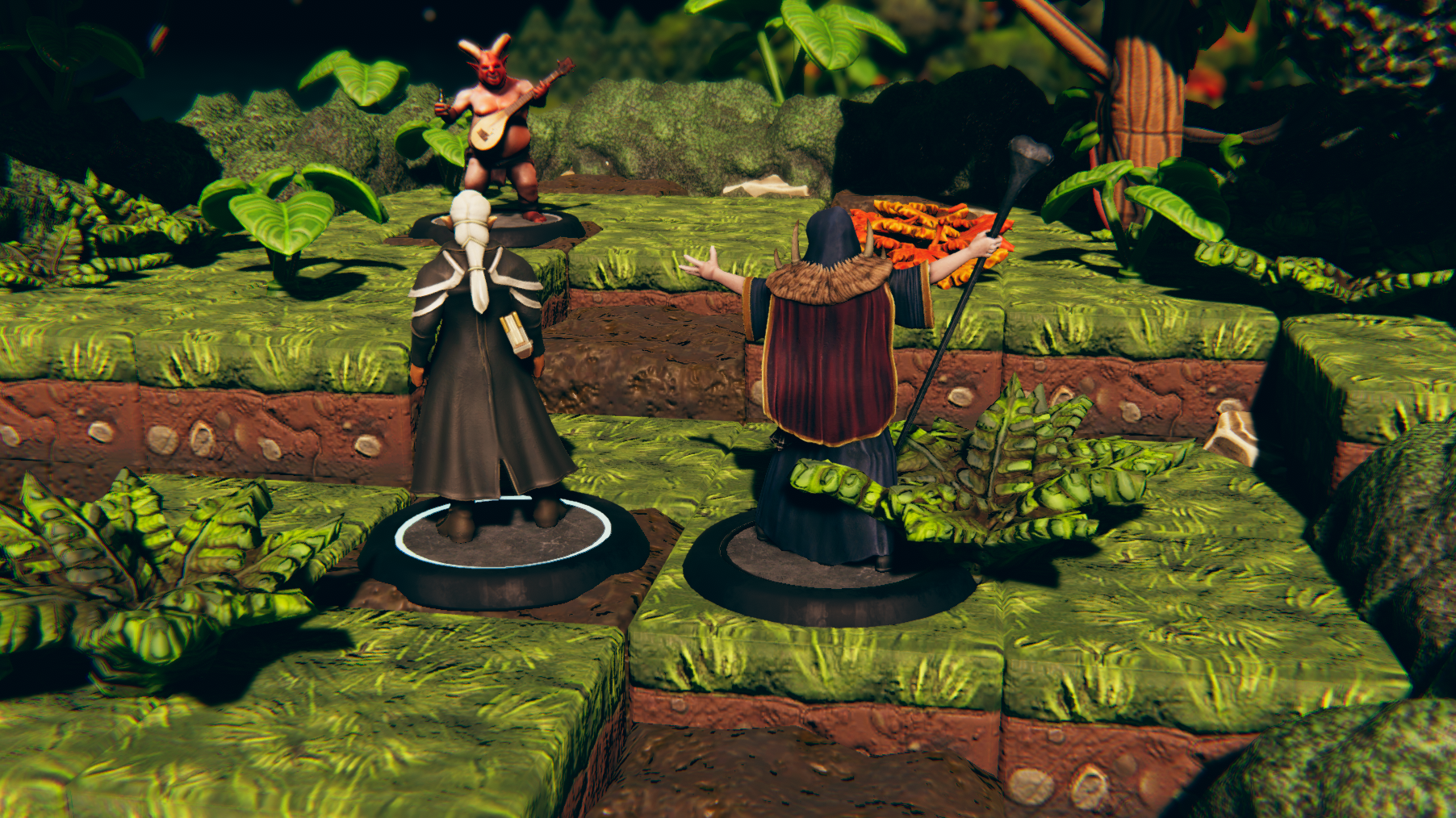 Al verlos llegar, la criatura fue apagando lentamente la melodía hasta que puso el corte final y, con parsimonia, dejó el laúd a un lado, apoyado contra la piedra en la que se sentaba. En cuando la música dejó de sonar, Adler y Delerion notaron que el día se había ido. De pronto se había cernido una oscuridad crepuscular sobre todo el bosque. El cielo muestra extraños colores violáceos y constelaciones que no reconocen ni parecen tener sentido, y en el aire se siente denso. Una perturbadora sensación de ser observados por el propio entorno los acosa, pero el sátiro no parece para nada preocupado por el cambio.