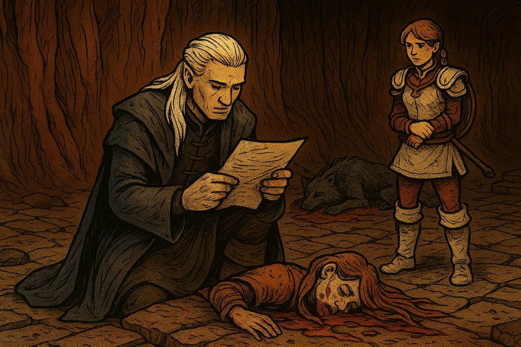 El duo se abre paso entre las cavernas, se encuentran con un pequeño grupo de goblins que parecían haberse quedado atrapados entre las ratas y los lobos y los derrotan y dan, en una de las cámaras de las cuevas, con el cadáver del aventurero abatido por lobos. Gracias a algunas de sus pertencias y algunas cartas, Adler consigue sacarle a Isadora que en realidad ellos son parte de la banda de contrabandistas que están saqueando el granero de la ciudad. Pero ella no es más que un peón, una aprendiz de mago que se unió recientemente para hacer algunas monedas gracias a sus poderes arcanos. No sabe demasiado y no quería que muriera un chico inocente. Le asegura al crérigo que más adelante puede encontrar documentos importantes que delaten la conspiración de los aventureros, aunque… tienen que vencer a los lobos. Aunque la confianza es cada vez más escasa, avanzan, usando los cadáveres de las ratas para activar las trampas que se encuentran en el camino y llegan al cubil de la manada.